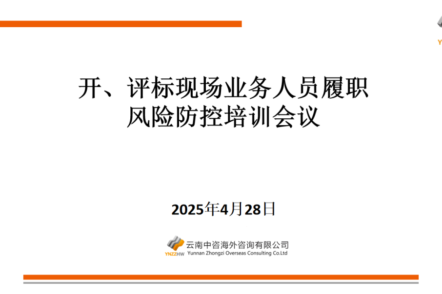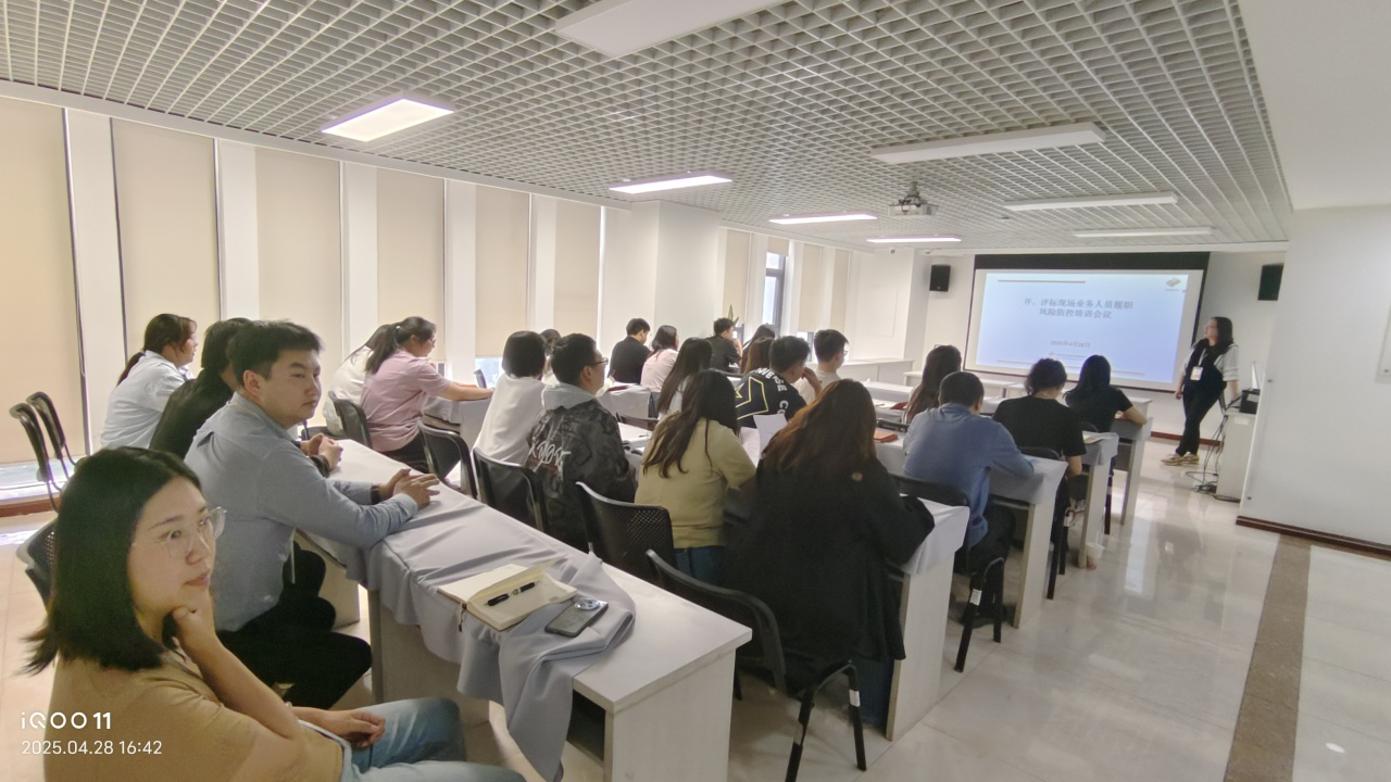 2025年4月28日,我公司组织了题为“开、评标现场业务人员履职风险防控培训会议”的内部培训会。
